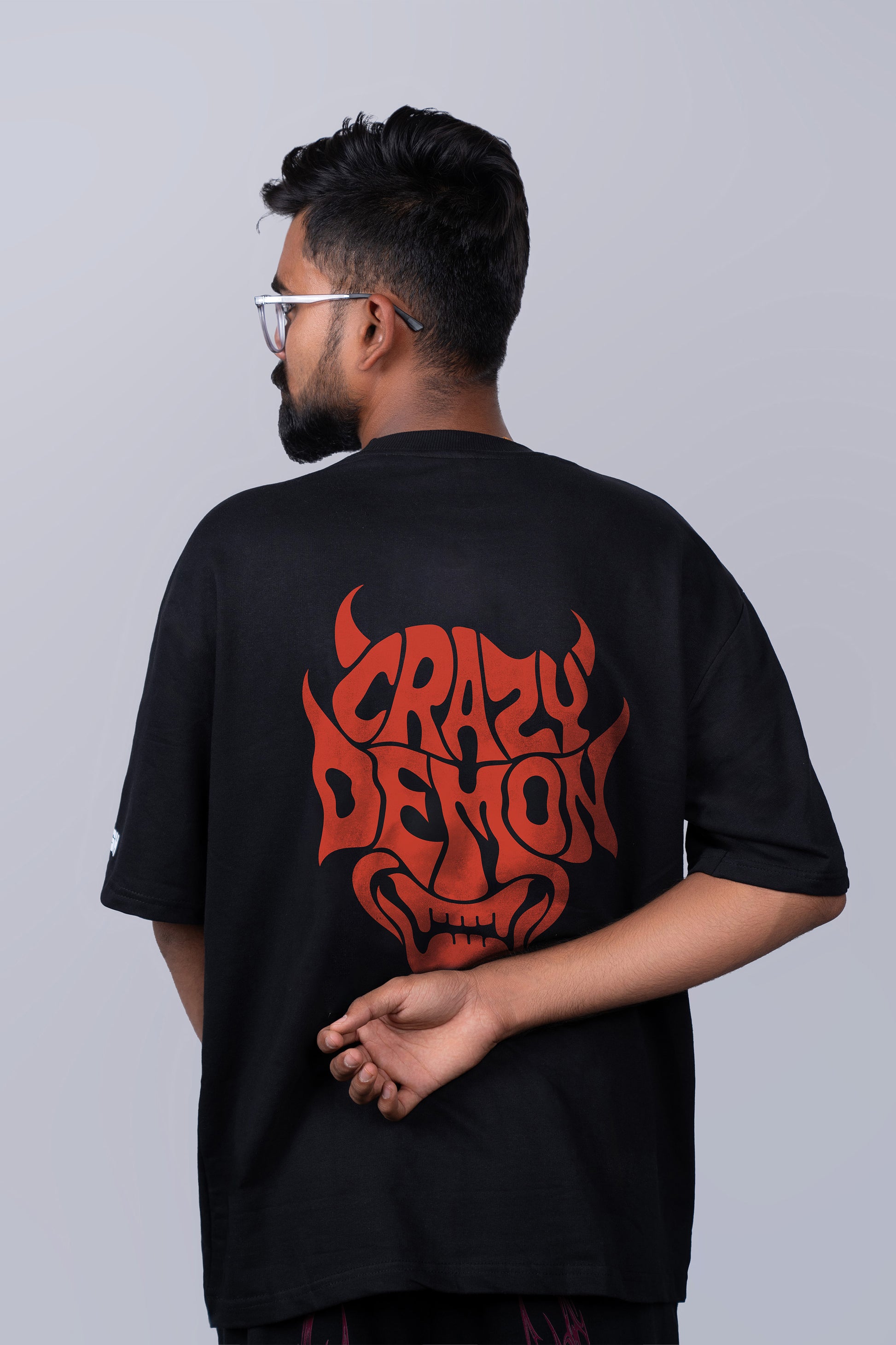 Unleash your bold side with the Crazy Demon Oversized Black T-Shirt, a must-have for streetwear enthusiasts who love dark, gothic-inspired fashion. Featuring a fiery red "Crazy Demon" logo on the front and an intense demon face graphic on the back, this oversized tee is perfect for those who embrace rebellious style.